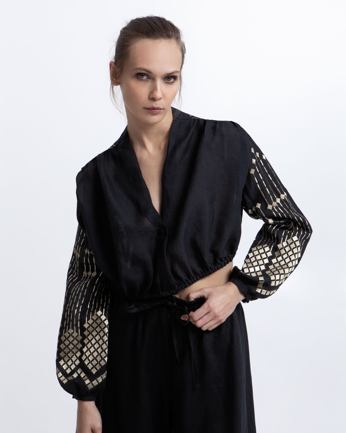 BLOUSE GRAPE CROPPED L/S 100% RAMIE, 100% PL EMBR. THREAD