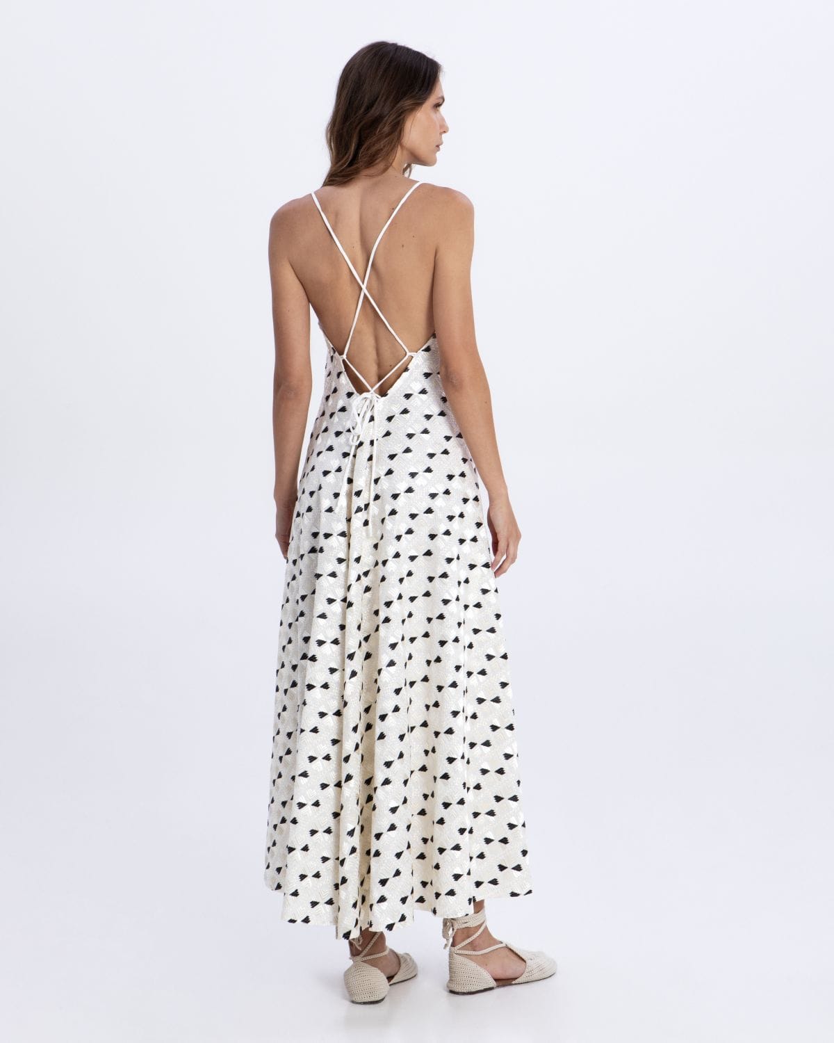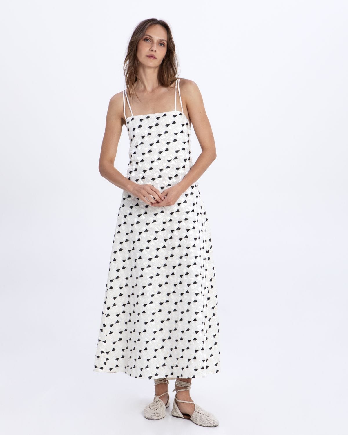 DRESS MAXI FLAKES DOUBLE STRAPS 100% RAMIE, 100% PL EMBR. THREAD