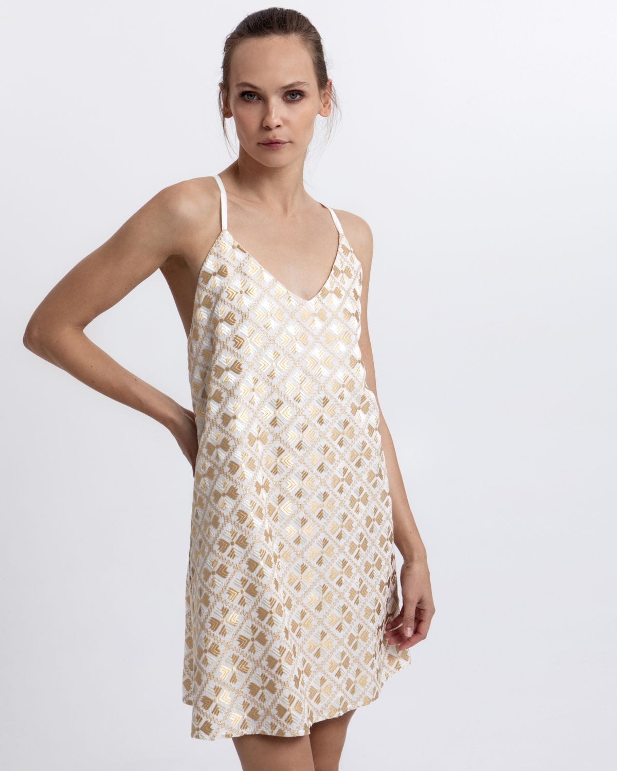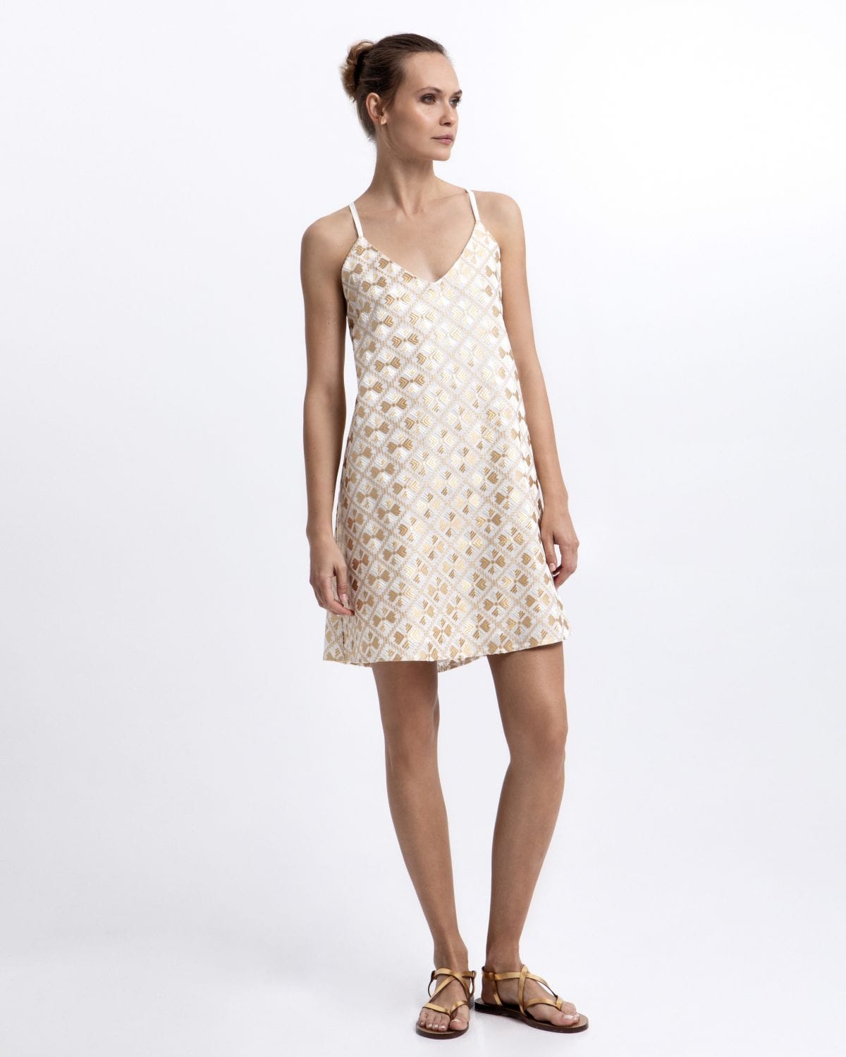 DRESS MINI FLAKES STRAPS 100% RAMIE, 100% PL EMBR. THREAD