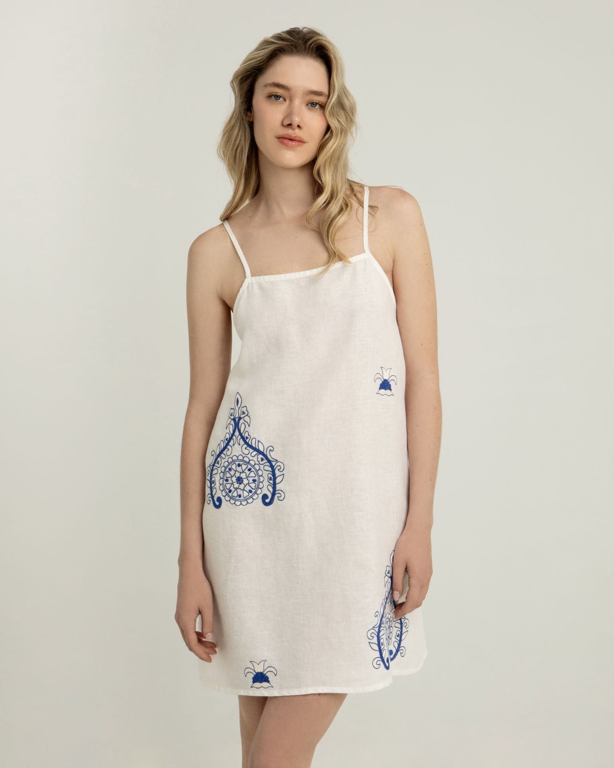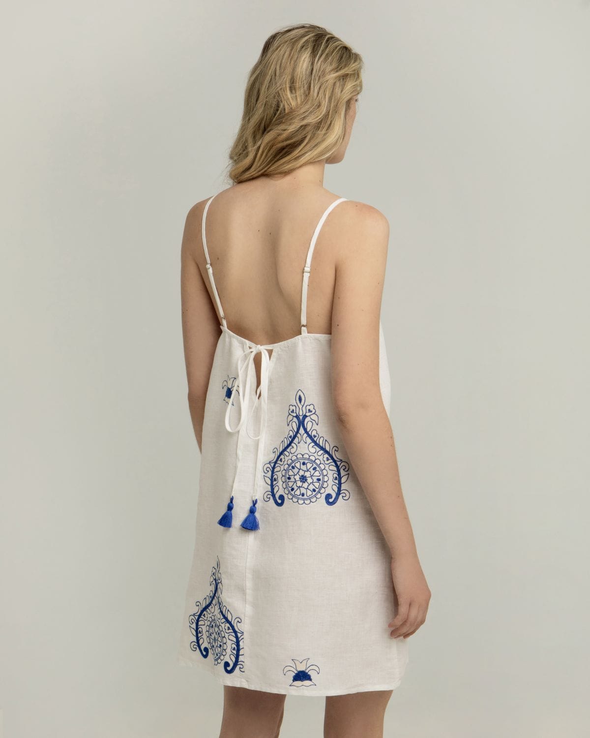 DRESS SHORT PITHARION STRAPS 100% LINEN EMBR. 100% POLY