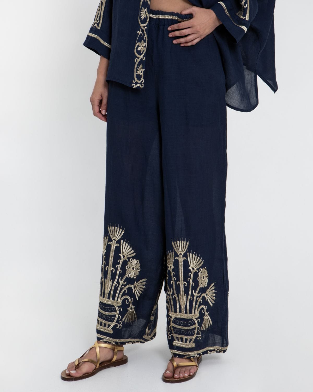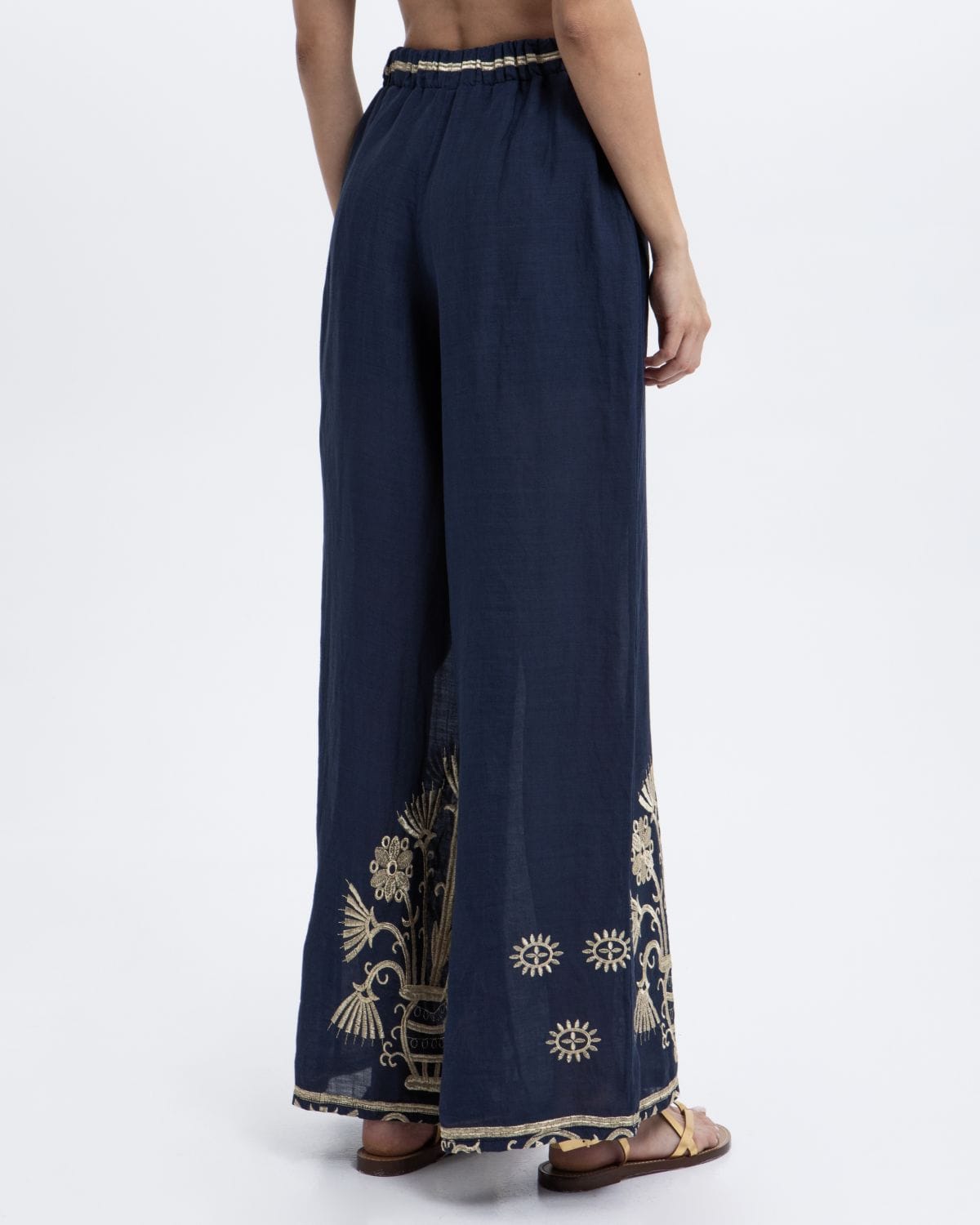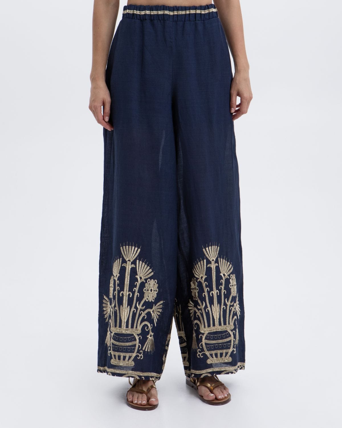 PANTS CRETE ELASTIC WAISTBAND 100% RAMIE, EMBR. 100% POLY
