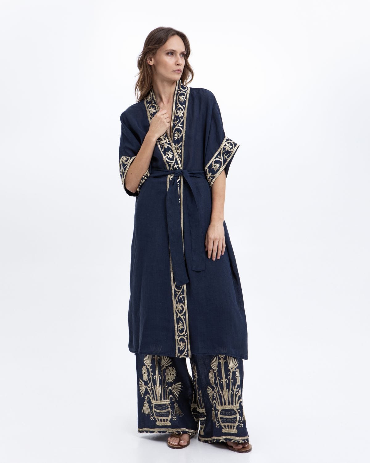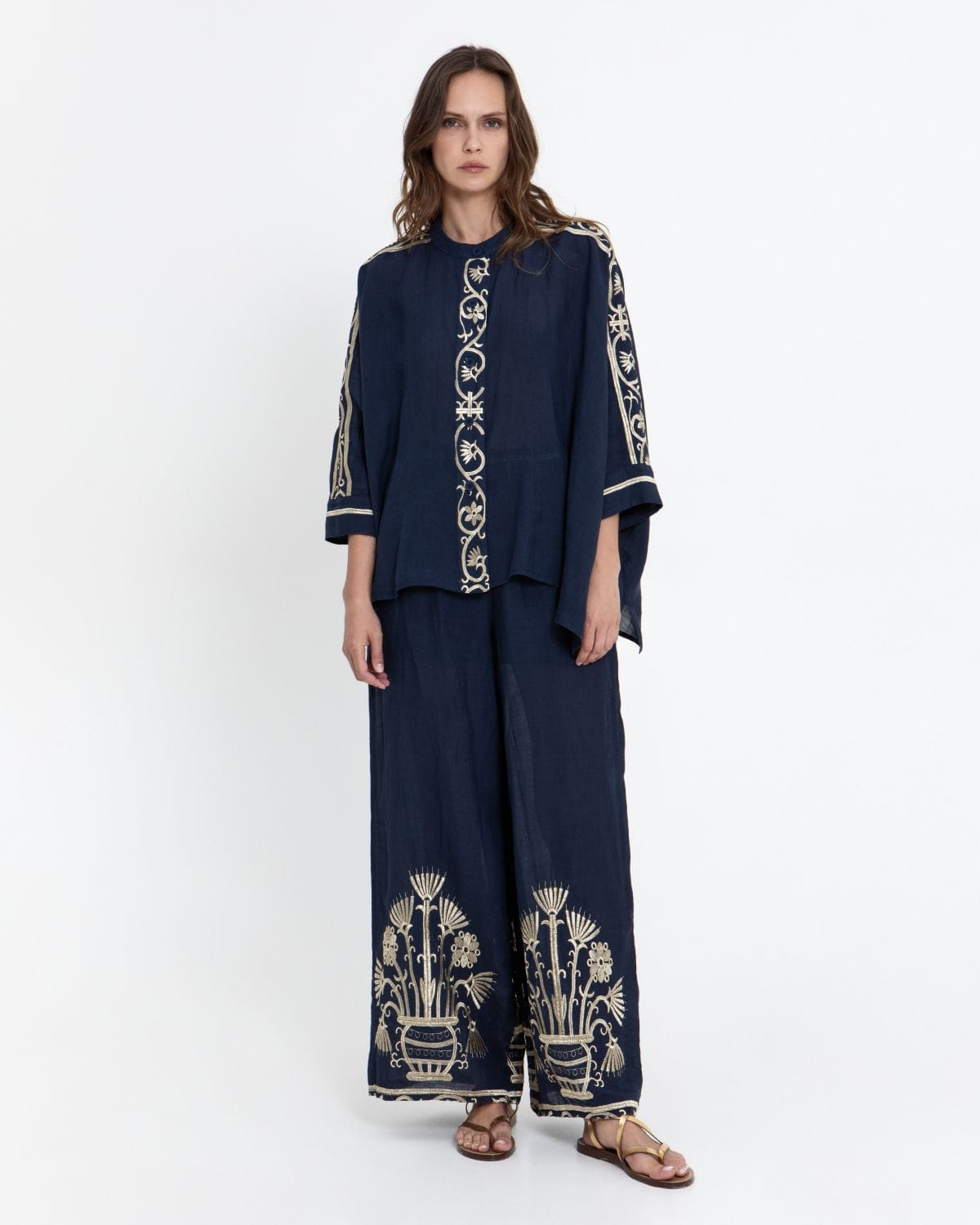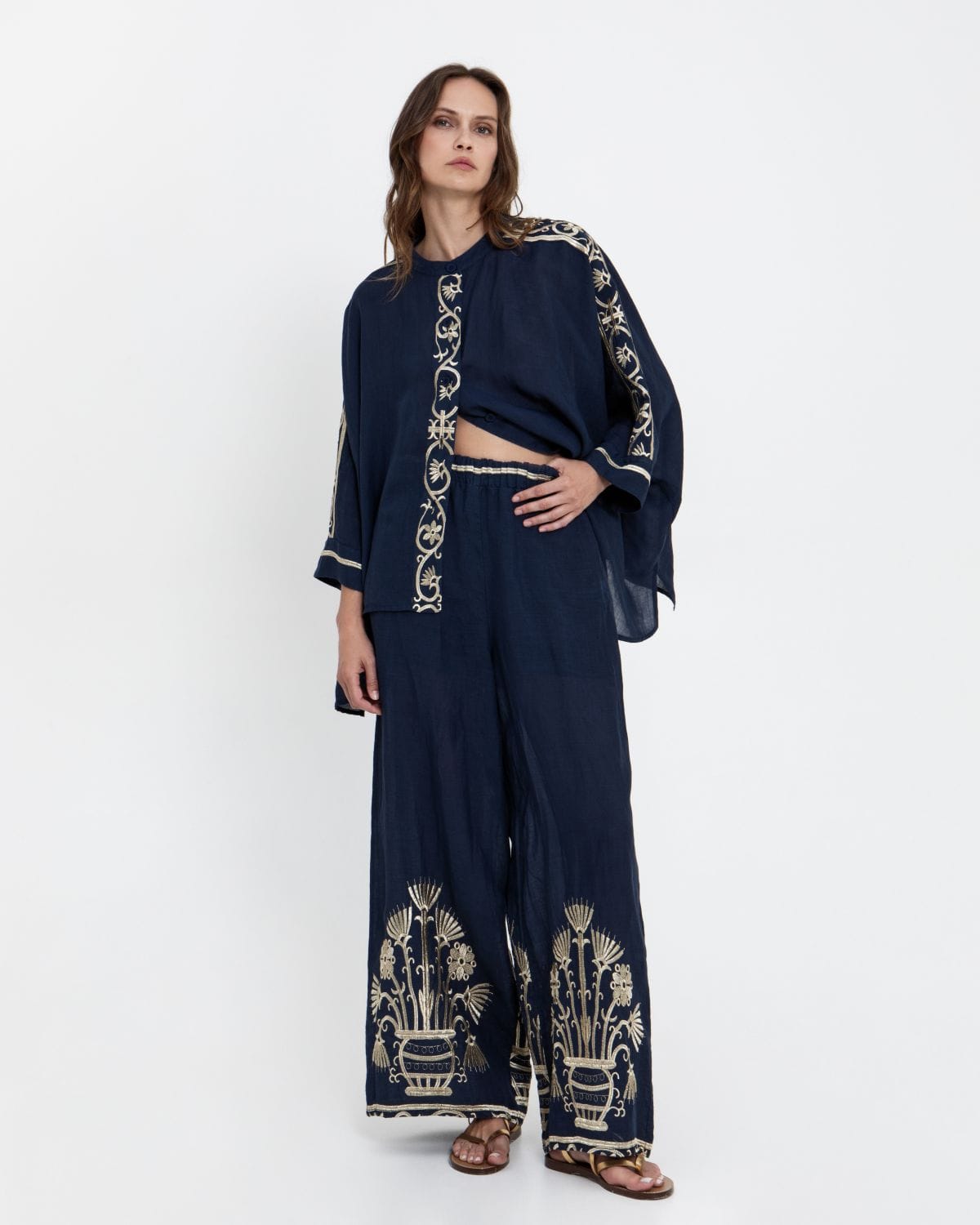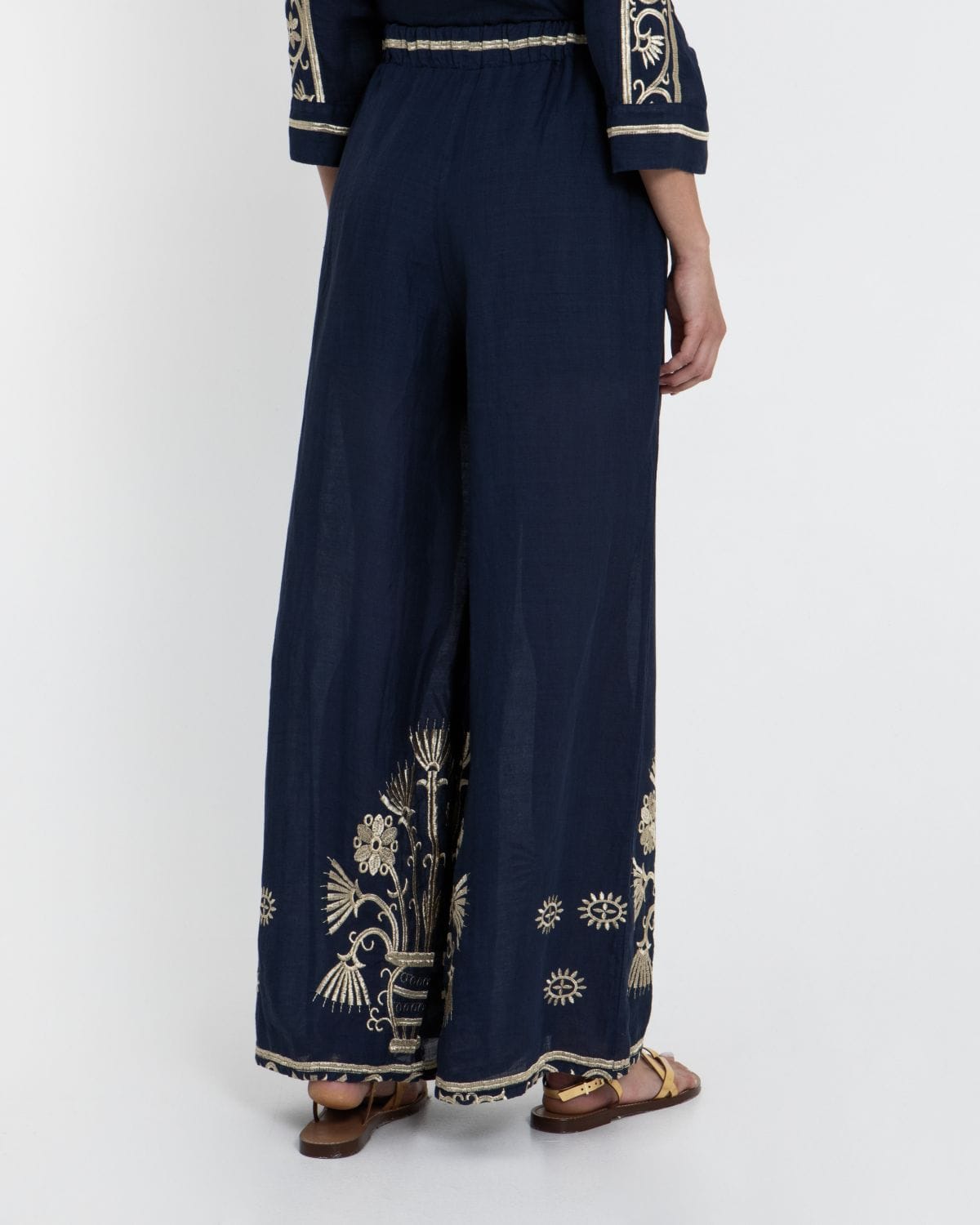 PANTS CRETE ELASTIC WAISTBAND 100% RAMIE, EMBR. 100% POLY