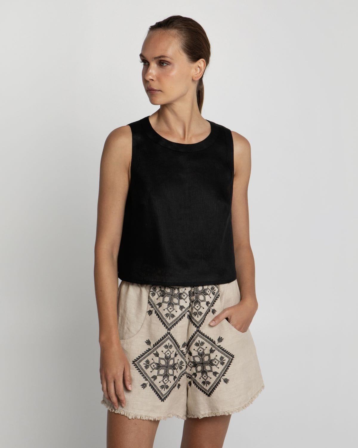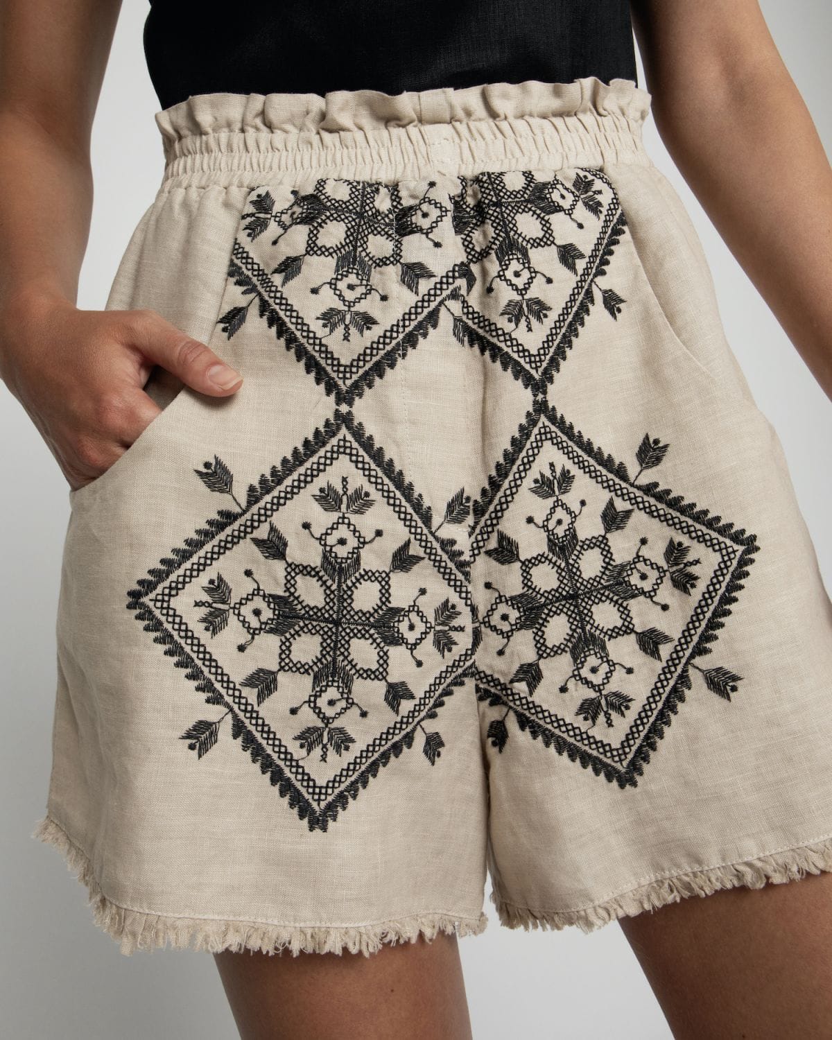 SHORTS LEFKADA ELASTIC WAIST FRINGES 100% RAMIE EMBR. 100% POLY