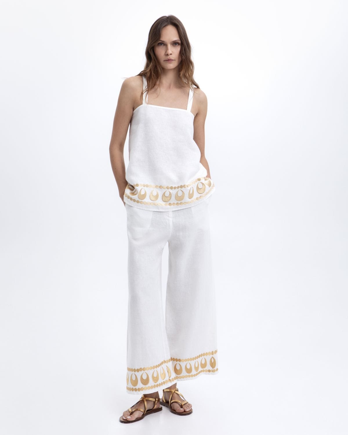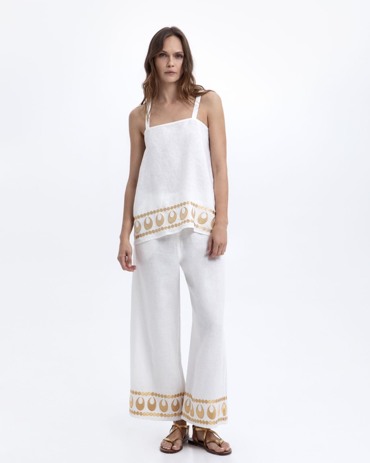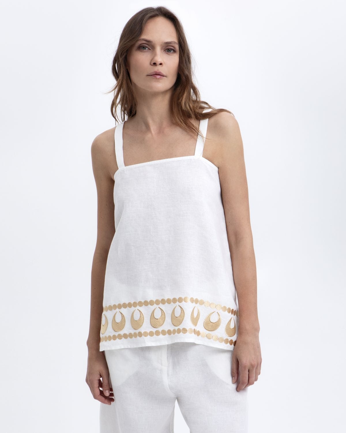 TOP SELENE STRAPS 100% LINEN, EMBR. 100% POLY